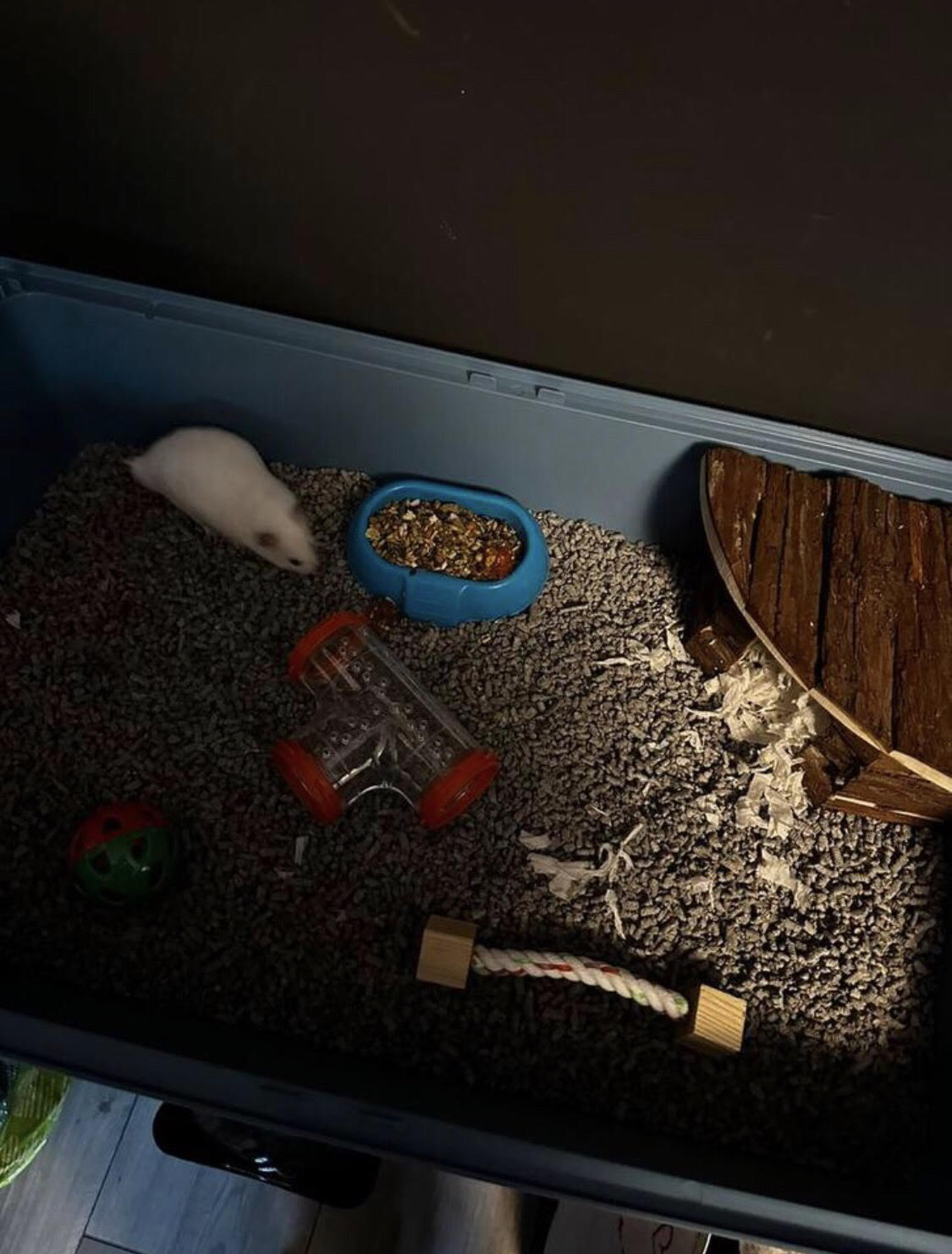 Dit is Muffin, mijn eerste opvanghamster. Ze was sinds 01-08-24 in de opvang. Ze is wel een beetje schuw maar ze houd van graven en dit zie je ook aan haar holletjes (wat ik mega interessant vind om naar te kijken) Ze houd enorm veel van lopen in haar wiel, rond 11 uur s'avonds word ze wakker en houd ze van lekker rondlopen en aandacht. Ze heeft nog nooit gebeten en weet volgens mij ook niet dat ze dat kan doen, ze heeft echt 0% slecht in haar, denk dat zij de liefste hamster is die ik ooit heb gehad. Vond het heel jammer dat ik haar niet zelf kon houden, maar uiteindelijk heeft ze een heel leuk huisje gevonden waar ze het hardstikke goed heeft!