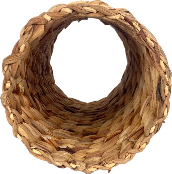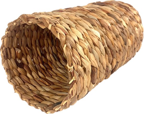 De Hyacinth Tunnel M is een natuurlijke, handgevlochten tunnel gemaakt van 100% gedroogde waterhyacint. Perfect als speelobject én veilig schuilplekje voor kleine huisdieren zoals cavia’s, jonge konijnen, chinchilla’s en ratten.